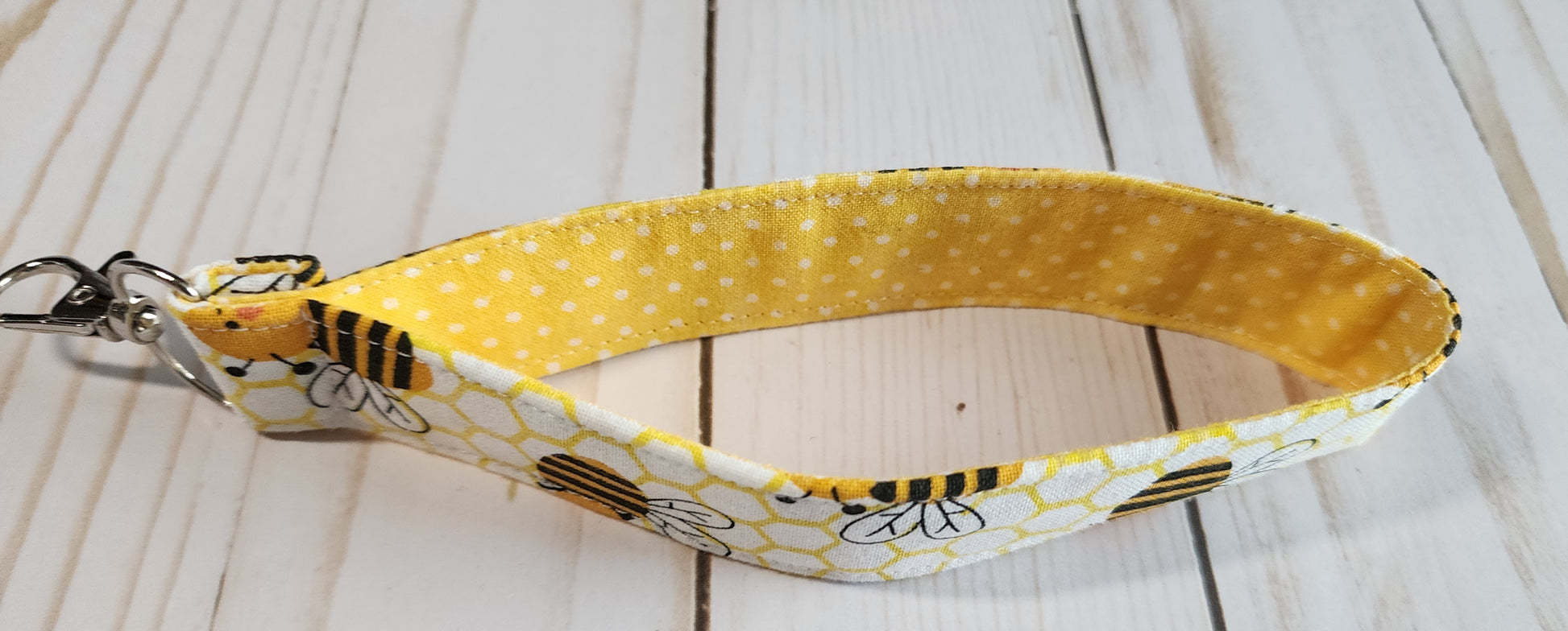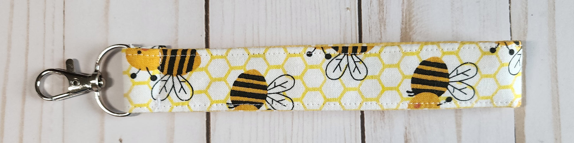 Bees on Yellow Honeycomb Wristlet Keychain