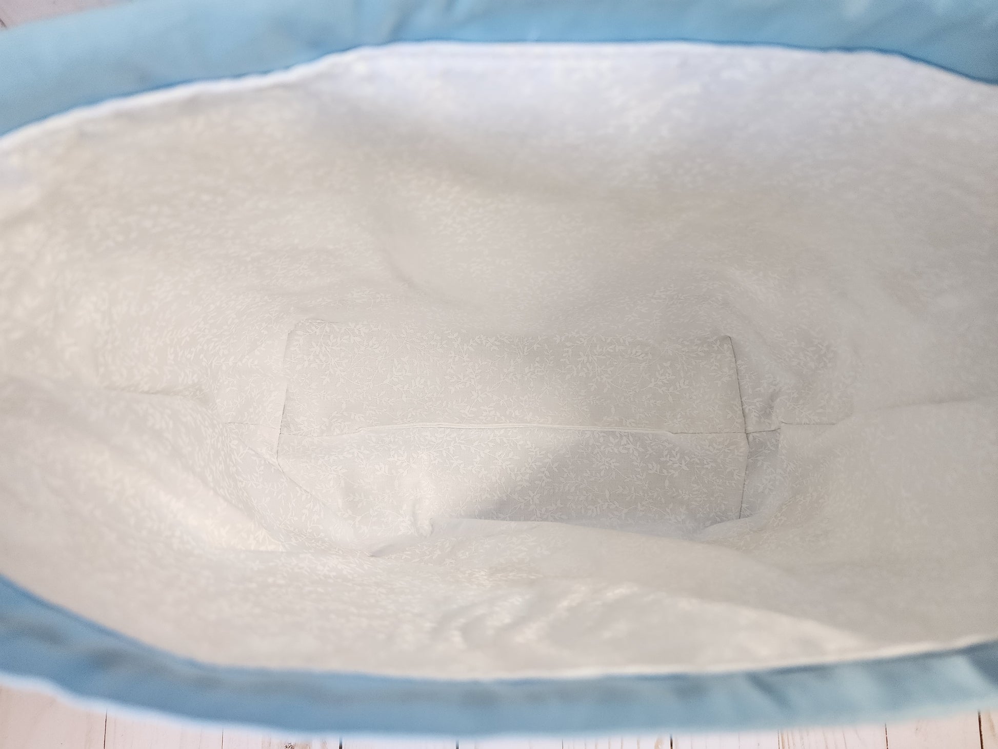 This Large Drawstring bag will carry your projects around in style. Roomy enough to carry several skeins with room to spare! Whether it's 7 oz skeins of Red Heart or 300g balls of your favorite wool, this bag has you covered and looks pretty doing it! Bag is made with medium weight interfacing so it provides structure to the cotton fabric and allows the bag to stand on its own. Yet, it's flexible enough to be folded and put away when not in use. Drawstring also is a great strap around your wrist to continue working as you go!